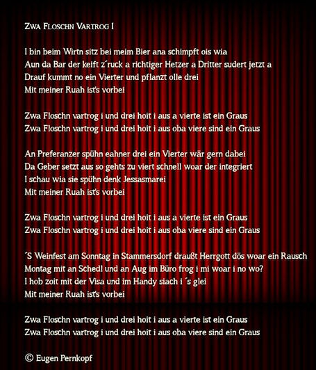 Wir spielen nicht alltägliche Unterhaltungsmusik mit Anspruch an die Qualität der Musik (stilistisch authentischer Blues und Rock sind die Basis) und der Texte (v.a. Mundarttexte aus eigener Feder). Will es der/die VeranstalterIn für sein/ihr Publikum, dann greifen wir auf englische Texte zurück. Wir unterhalten die Leute konzertant/vollverstärkt oder auch "hintergründig"/akustisch. Je nach den Anforderungen der Situation, aber immer mit Schmäh und Humor. In Live-Situationen schöpfen wir aus einem großen Repertoir eigener und gecoverter Songs, unter anderem von den Rolling Stones, Chuck Berry, Muddy Waters, Bo Diddley, Marianne Faithfull, John Lee Hooker, R.L. Burnside. Das Besondere dabei: Zur freudigen Überraschung der Leute ist immer ein eigener, umgangssprachlicher Text damit verbunden...